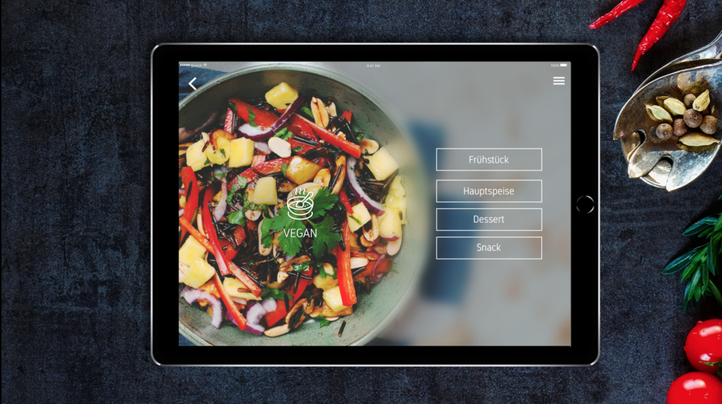 Dieses Projekt zeigt eine interaktive Koch-App für Studenten, die unterschiedliche Gerichte anhand von kurzen Videos visualisiert und diese somit einfach und schnell Schritt für Schritt gekocht werden können. Die Gestaltung der App ermöglicht eine intuitive Bedienung und verzichtet auf komplexe Steuerungen. Die Besonderheit der App ist der dynamische Content. Durch das Kochen und Favorisieren einzelner Rezepte werden Vorlieben des Nutzers hinterlegt, um den individuellen Geschmack des Nutzers zu treffen. Zudem können Informationen zu bestimmten Zutaten hinterlegt und eine Einkaufsliste generiert werden.